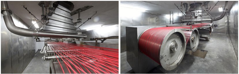 南洋電纜有限公司具有兩條國際領(lǐng)先水平AB型高頻高壓電子加速器,用電子加速器輻照電線電纜是輻照加工的重要領(lǐng)域,它集結(jié)電子技術(shù)、高能核物理技術(shù)、真空技術(shù)、計算機技術(shù)、輻照化學(xué)技術(shù)和電線電纜制造技術(shù)于一體,是當(dāng)今高新技術(shù)的榜樣。由電子加速器產(chǎn)生的高能電子束,作用在聚合物內(nèi)部,使聚合物的分子結(jié)構(gòu)產(chǎn)生顯著的改變,由原本的線性變成不溶不熔的三維網(wǎng)狀結(jié)構(gòu),從而使材料具有特別的耐熱性、耐化學(xué)性、耐輻照性、高阻燃性、高強度性。